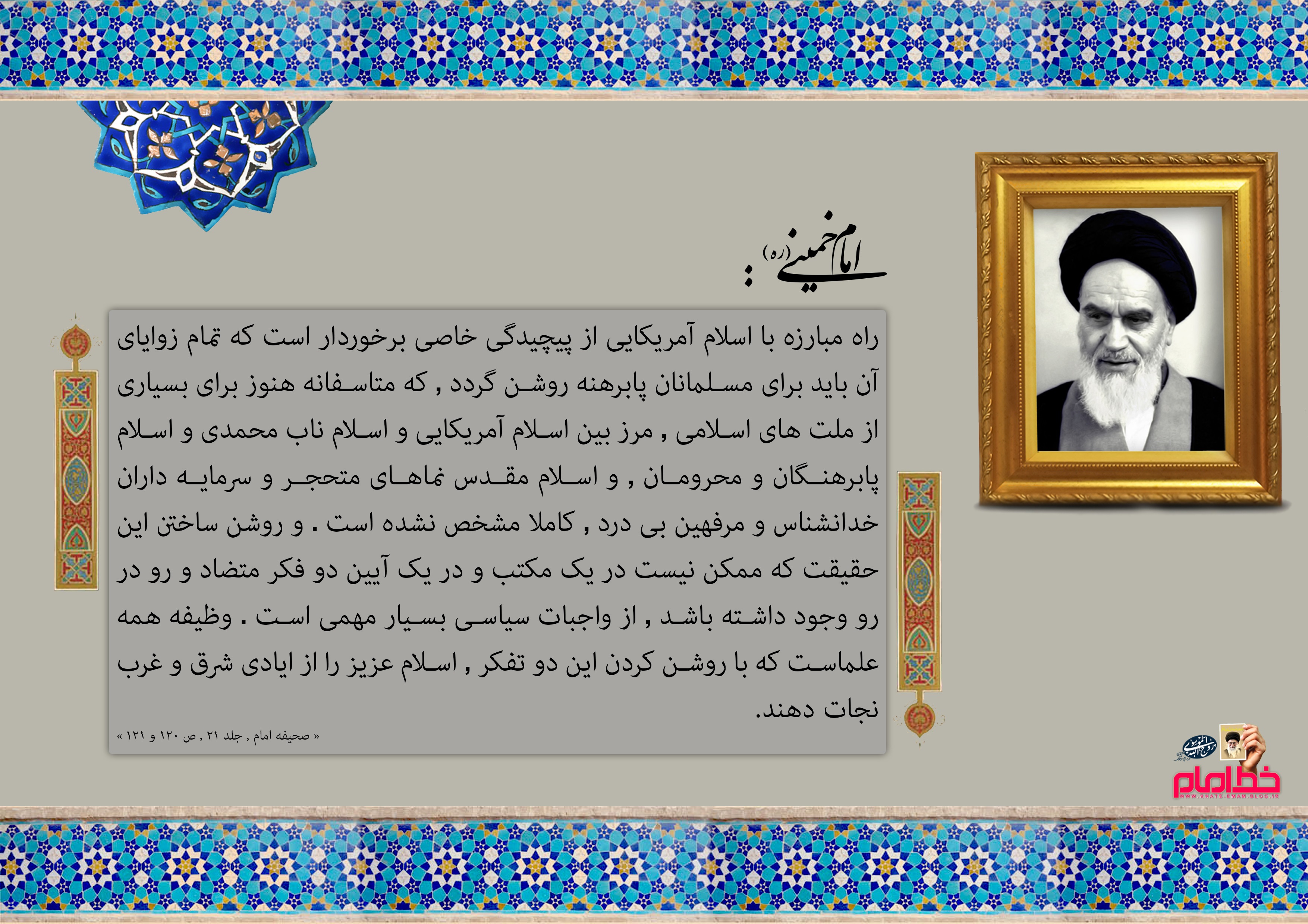 آقا خیلی مظلوم است، نمی دانیم چه آقایی داریم. حجاب معاصر جلوی چشمانمان را گرفته است. حقیقتاً ما بچه حزب اللهی ها داریم کم می گذاریم. مطلبی را می خواندم از حضرت آقا- بیانات در جمع دانشجویان دانشگاه تهران سال 77- ایشان فرموده بودند :